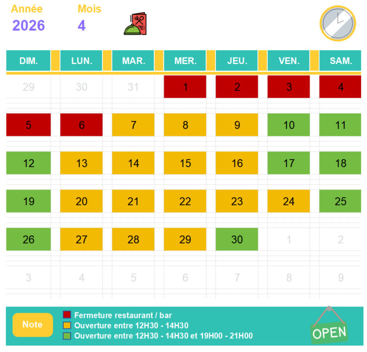 🗓️ Nos disponibilités en Avril 2026:
